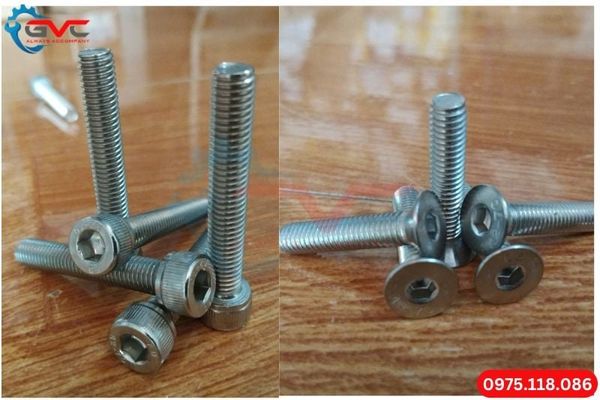 Đặc trưng bởi phần đầu có lỗ lục giác chìm, cho phép sử dụng chìa khóa lục giác (allen key) để siết chặt. Bu lông lục giác chìm inox 316 mang lại tính thẩm mỹ cao do đầu bu lông có thể nằm phẳng hoặc chìm vào bề mặt vật liệu, đồng thời tiết kiệm không gian và giảm nguy cơ vướng víu. Các loại bu lông lục giác chìm phổ biến bao gồm: