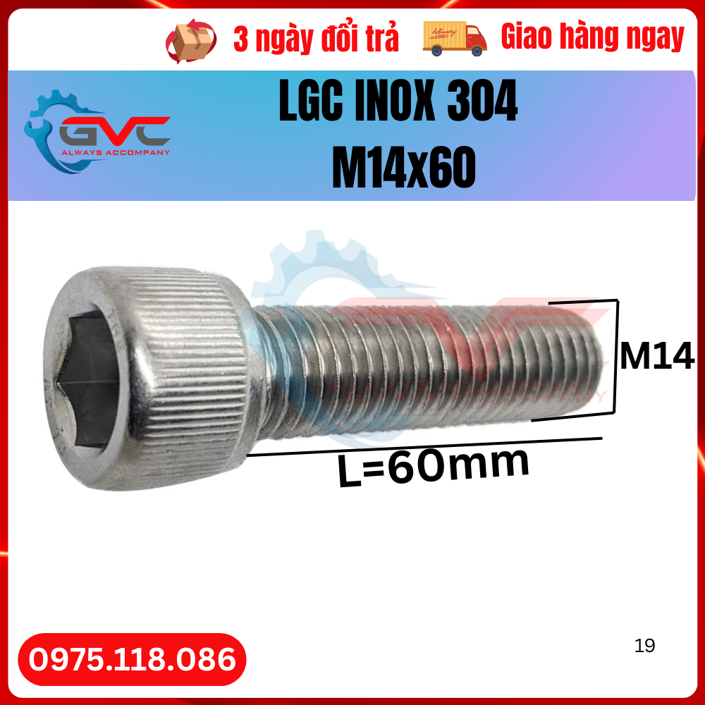 Bu long lục giác chìm đầu trụ DIN 912 inox 304 M14x50 thuộc danh mục hơn 1000 chủng loại bu lông ốc vít của công ty GVC, Là linh kiện cơ khí được sử dụng trong nhà máy gia công chế tạo, khuôn mẫu, máy móc tự động hóa, các thiết bị dùng trong ngành thực phẩm, dược phẩm, môi trường axit, muối biển, làm việc ngoài trời sẽ sử dụng bu lông lục giác chìm đầu trụ mang chất liệu phù hợp...Để ghép nối các chi tiết với nhau, với độ cấp bền tiêu chuẩn cao, Tổng kho bu lông ốc vít sẵn kho từ M3 đến M36. Bulong ren hệ mét, Bu lông lục giác chìm đầu trụ inox 304 M14x50 giá cả hợp lý nhất trên thị trường