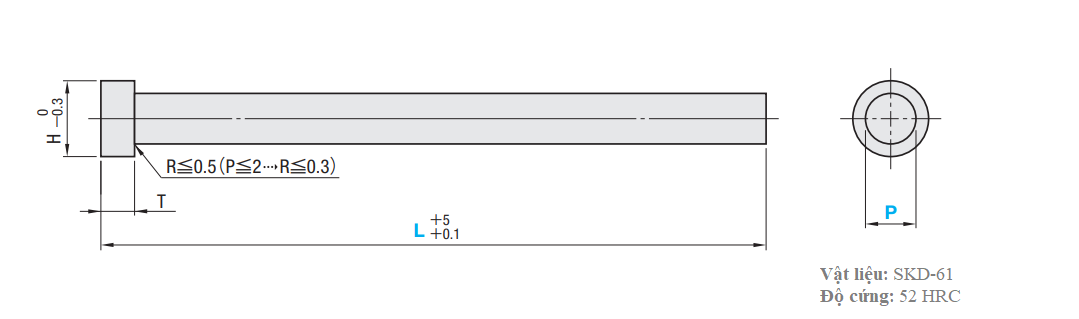 Thông Số kỹ thuật chốt đẩy khuôn